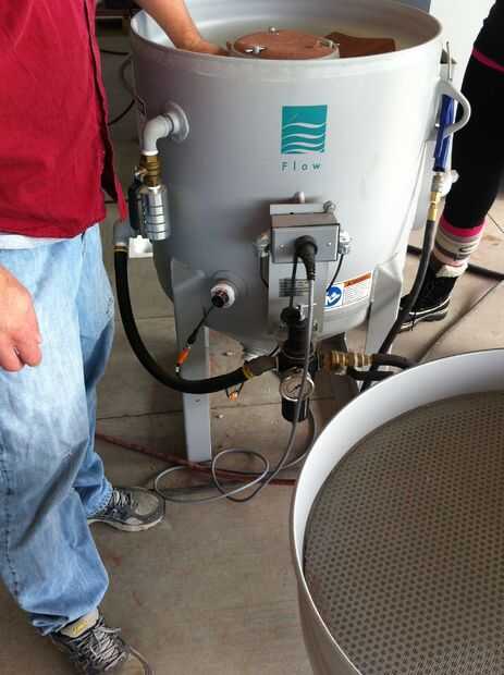 Tolva de abrasiva: Hay algunas cosas que aquí. Tener en cuenta el nivel de abrasivo y asegúrese de que la tolva se presuriza con aire.