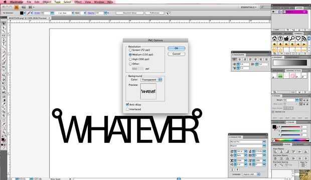 B. exportación usando archivo -> Exportar. Seleccione PNG. En el cuadro de diálogo Opciones de PNG, seleccione 150 ppp. Guarde el archivo en algún lugar fácil de encontrar.