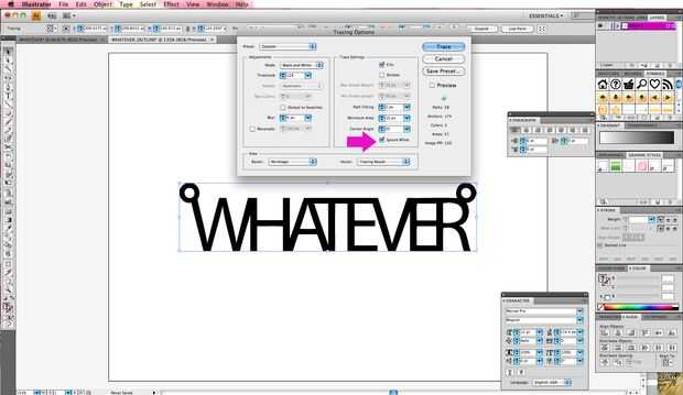 F. Haga clic en la cajita al lado de calco para que aparezca las opciones. Se puede jugar con ellos si la imagen no se ve suficiente como su inscripción original. Asegúrese de que tener "Vista previa" seleccionado para que usted pueda ver los resultados de seguimiento en tiempo real. Asegúrese de que también se selecciona "Ignorar blanco"!