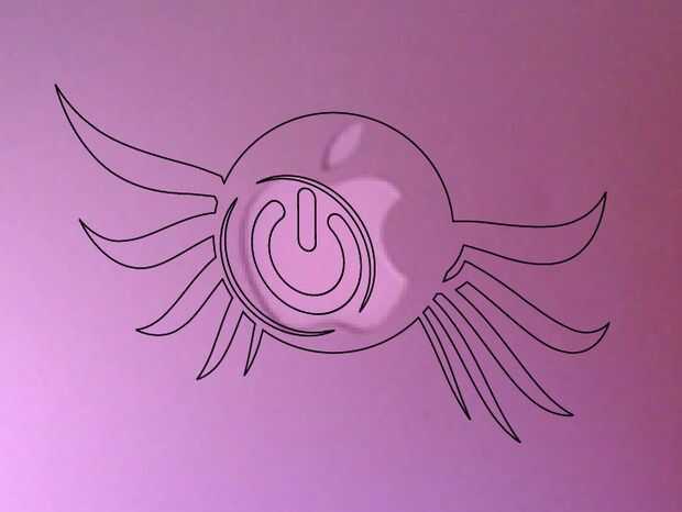 lancé este diseño con Illustrator. Se adjunta el archivo que termine con. También tomé una foto de mi tapa de portátil para obtener la proporción adecuada; se puede ver que el diseño tiene un área brillante que está totalmente dentro del logo de Apple existente pero también totalmente cubiertas el resto del logotipo.