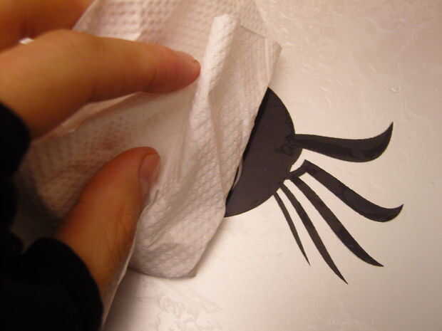 Con un pedazo de plástico, me squeegeed cuidadosamente el área y luego le dio unas palmaditas con una toalla de papel. La etiqueta era bastante fijo, en este punto, pero como el líquido completamente malos hacia fuera de debajo el pegamento a la tapa del portátil, lo que es más permanente. Lo mejor de todo, se ve perfecto.