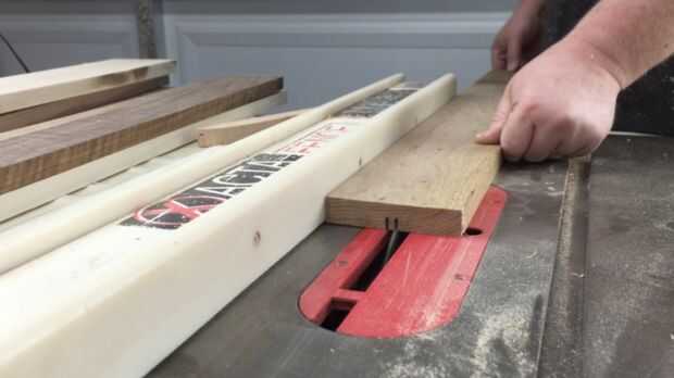 Ajustar la guía en hacia la cuchilla inferior a la anchura de corte de una hoja y hacer dos pasadas más de la misma manera que hiciste anteriormente. Pase, girar la tabla 180 grados y luego una segunda pasada.
