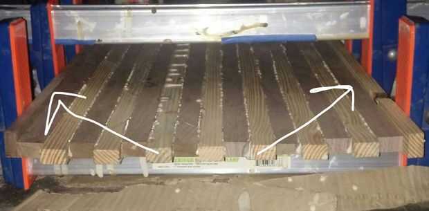 Una vez pegue las piezas, empiezan a apretar las abrazaderas. He utilizado tres abrazaderas para evitar el arqueo de la madera, también usé dos tableros simulados para prevenir las marcas de la abrazadera y aplique presión uniforme.