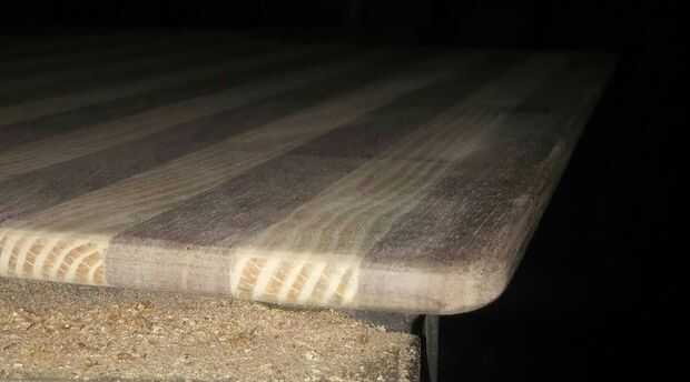 100 uso papel de lija de la arena y la pieza entera redondeando las esquinas de la arena. Utilice papel de lija de grano 150 y arena hacia abajo otra vez para un acabado liso