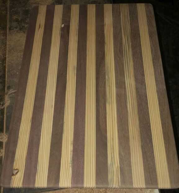 hice esta tabla de cortar de nogal y 2 x 4 para mi mamá... Estoy en el proceso de hacer otro uno para la boda de un amigo... publicaremos fotos e instrucciones cuando termine...Paso 1: diseño una vez que la Junta desea utilizar... para sacar su diseñ