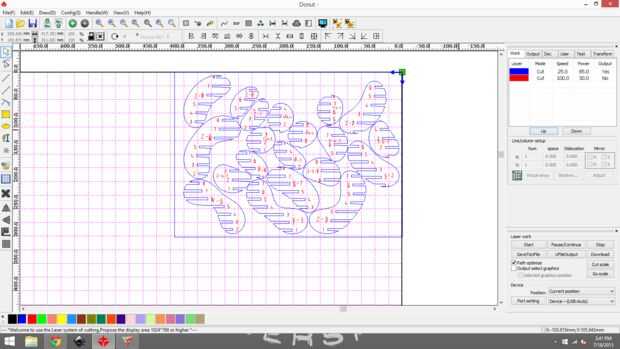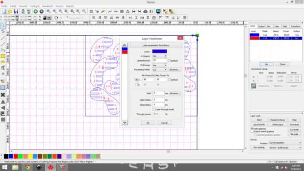 5. Editar la capa azul para tener una potencia de 85 y una velocidad adecuada. Usted querrá ha ejecutado nuestro archivo de prueba en el material con el fin de determinar su configuración óptima velocidad!