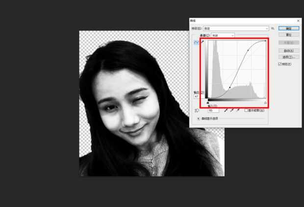 1. Para hacer la imagen blanco y negro es más evidente contraste, la curva de la imagen. (ctrl + M) (imagen 1)
