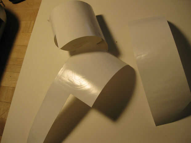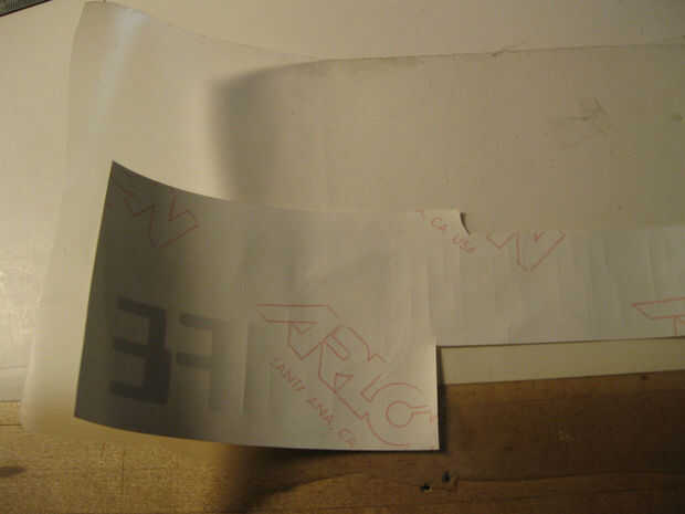Cuando la etiqueta es totalmente desmalezada es hora de piel con cinta de la transferencia. Cinta de transferencia es un material utilizado para ayudar a transferir el vinilo de corte delicado al lugar que desea pegar. La cinta de transferencia es bastante pegajosa para fijar el vinilo cuando quite el papel de respaldo, pero no tan pegajosa eso él levanta el vinilo cuando pega la etiqueta a una superficie. Se vende cinta de la transferencia en varios tamaños, pero el mejor chollo he encontrado está claro el papel de plataforma de contacto marca. Simplemente corté un trozo del papel claro del estante del mismo tamaño que el vinilo que cortar, quitar el papel del forro del papel del estante y había pegado encima de la etiqueta engomada del vinilo. Utilicé un rodillo de goma para sacar las burbujas de aire y estaba listo para instalar en mi coche.