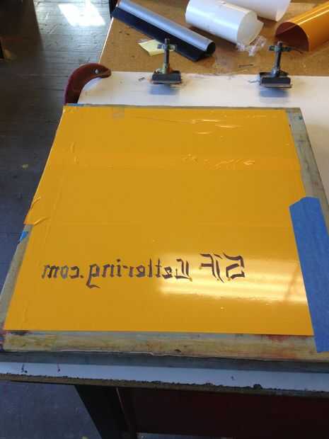 Cuando se prepara para imprimir con una serigrafía es mejor preparar la serigrafía todo con una superficie que no permitirá que la tinta a través de - utilicé una combinación de vinilo y cinta de pintor azul. Es importante para "cinta de" hasta los bordes y para asegurarse de que la cinta de pintores y vinilo extra la escobilla de goma en su posición.