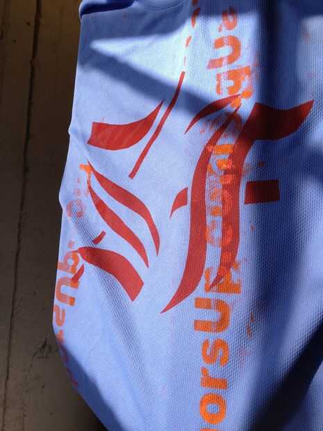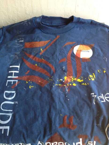 Aquí están varias impresiones de prueba de varios de una calidad que produje al fijar un tema donde inunda la pantalla con demasiada tinta realmente en el área de plantilla y es necesario hacer varias impresiones para conseguir tinta extra de la serigrafía. Observe que las camisetas aquí eran del depósito de chatarra y tienen las plantillas que han probado otras personas.