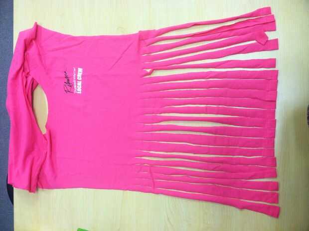 has hecho tu fantástico, maravilloso, colorido collar de tu camiseta vieja.  Pasamos de maravilla.  Es muy divertido tirar la camiseta en la yarda.  Ya has hecho uno para todo el mundo sabes y la gente ha sido dándole sus viejas camisetas.  Han acumu