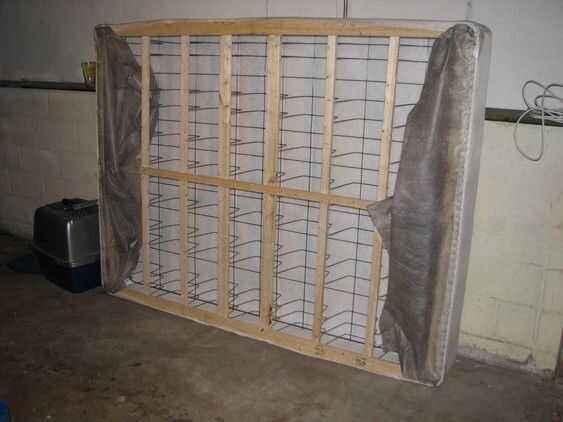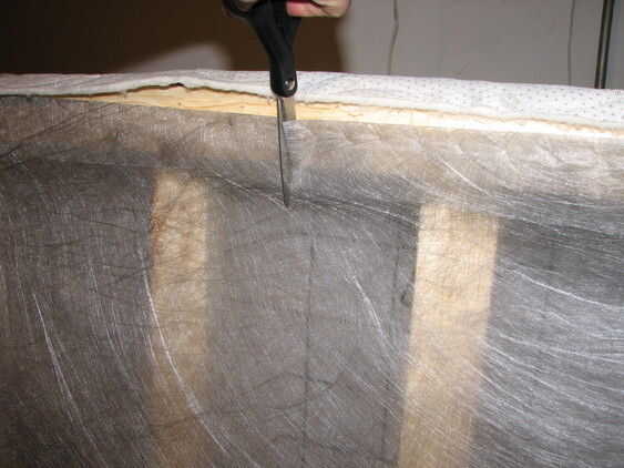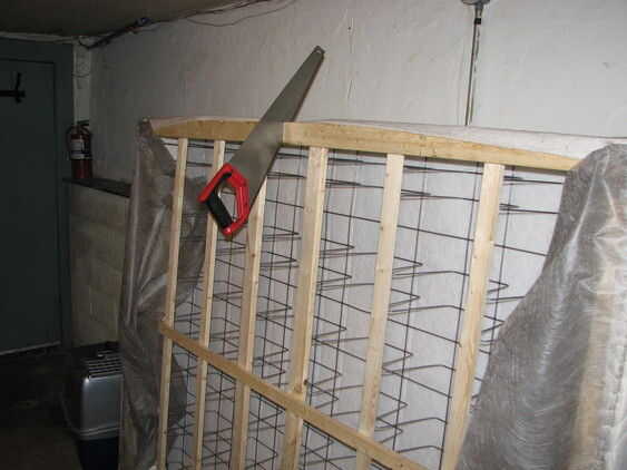 Mover la tela fuera del camino, vio a través de la estructura de madera a cada lado. El somier es finalmente flexible! Si todo lo que necesitas es ser capaz de doblar en una esquina, puede omitir el paso siguiente.