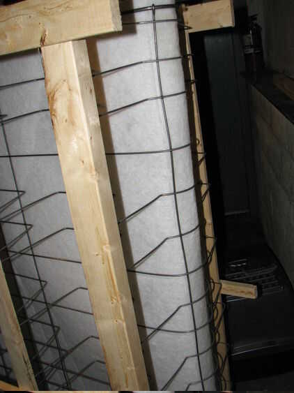 Utilizando el marco de una puerta u otros fulcrum recta, doble con cuidado el resorte de la caja por la mitad a lo largo de la mitad exacta de la parte superior. Guía de la tela se deslice fuera de las esquinas de la estructura de madera. Una vez parcialmente se dobla el alambre de acero grueso, movimiento contra la pared y doblar el resto del camino. Este es un buen trabajo para dos personas, para evitar que saltando hacia atrás y golpear a alguien.