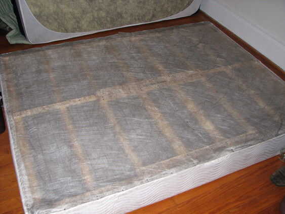 En retrospectiva, las grapas son la mejor opción porque son más fáciles de eliminar si necesita mover el resorte de la caja otra vez. He usado clavos porque eran útiles en el momento.
