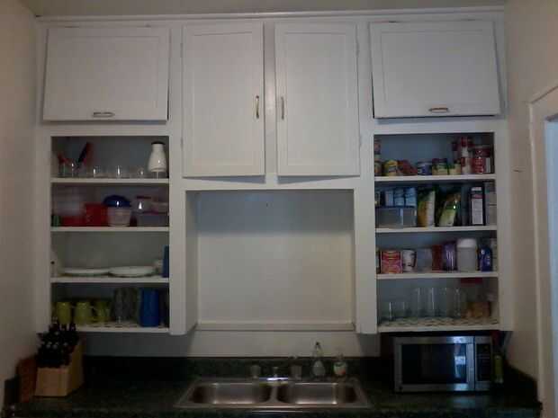 Me imaginé que el gran rincón vacío sobre el fregadero sería un primer punto para guardar cosas. Estarían fuera del camino, sin embargo fácilmente accesibles cuando limpieza de la cocina, dejaría cosas empapadas gotear en el fregadero en lugar de en el piso o contra.