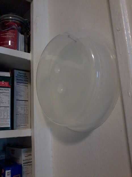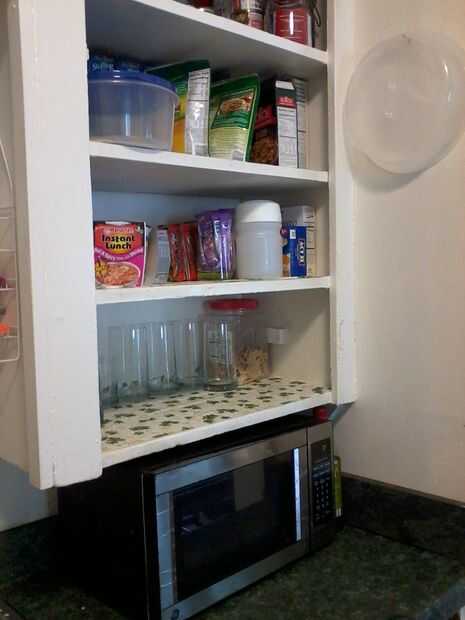 ¿Solución? Colgar la cubierta en la pared al lado del microondas, se encuentra cerca (y un gran recuerdo para mi marido!)