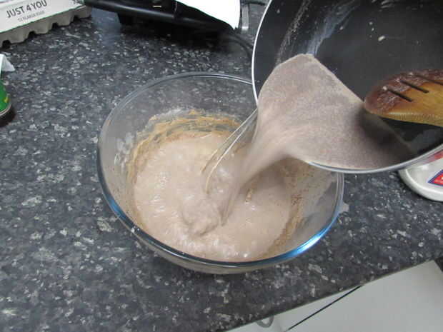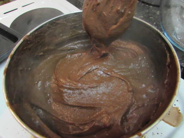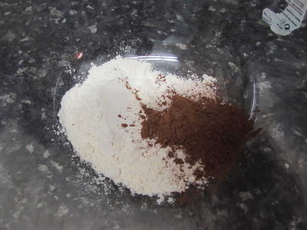 • Tamizar la harina y el cacao en polvo todas y añadir a la mezcla de huevo y bata hasta que se combina bien.