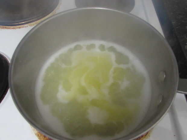 • Para el hojaldre de crema, tamice la harina y reservar. En una cacerola, hervir una taza de agua con mantequilla y sal. Una vez que hierva, añadir la harina a la vez y mezclar con una cuchara de madera. Cuando la mezcla se tira de los lados de la olla y ha formado una bola, sacar del fuego.