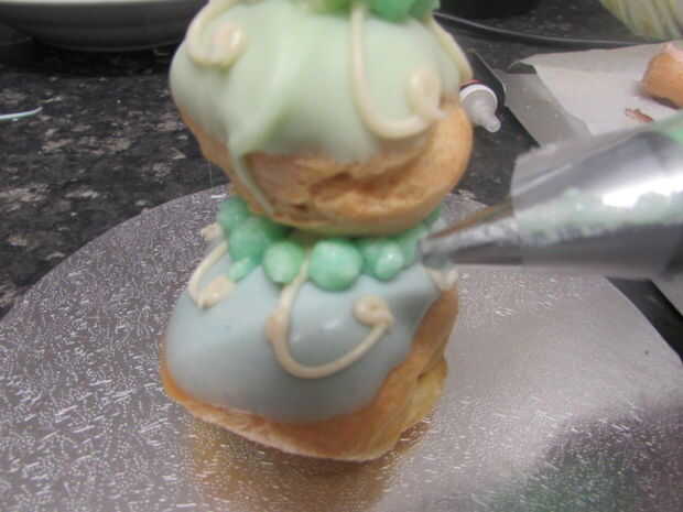 • Agregar un collar de puntos verdes entre bombas de crema.