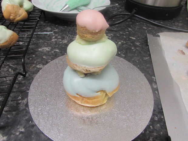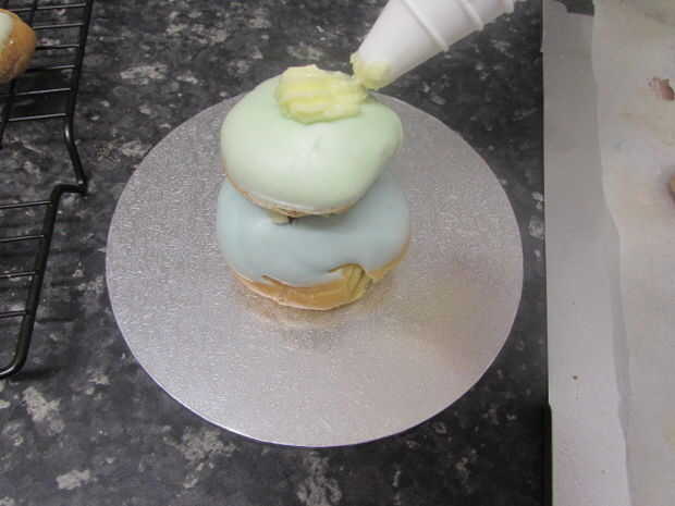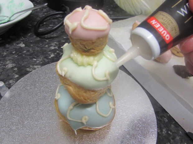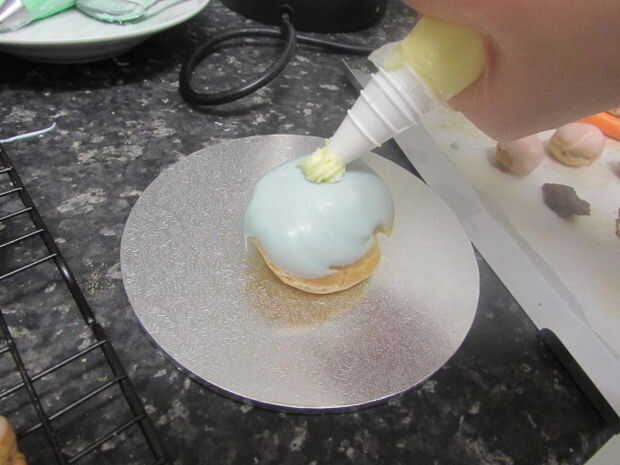 • En vez de poner alguna crema de mantequilla glaseado encima de cada hojaldre de crema, te recomiendo que uses chocolate blanco derretido para hacer el vínculo entre cada bocanada más fuerte porque mina mantenido por deslizamiento.