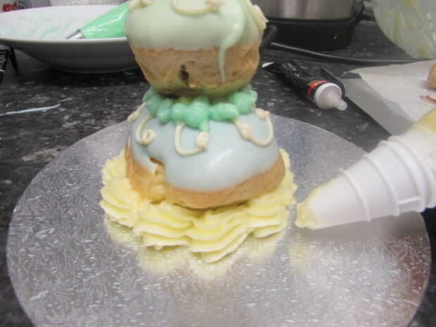 • Una punta de estrella, la crema de mantequilla glaseado diseño a lo largo de la base de la masa de la pipa.