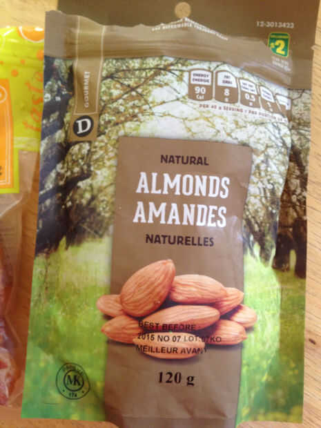 c 3/4 de almendras enteras, sin blanquear, tostado