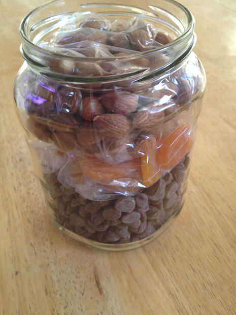 En la jarra Coloque instrucciones cómo hacer almendras y albaricoque de la corteza, que es: