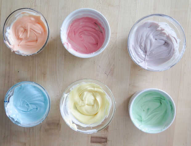 Una vez que se derritan todos los colores, añadir en los colores. Empieza con menos y añadir más si lo necesita. Recuerde, usted puede agregar color, pero no puede quitársela. Me fui con más colores pastel, pero usted puede hacer más oscuro.