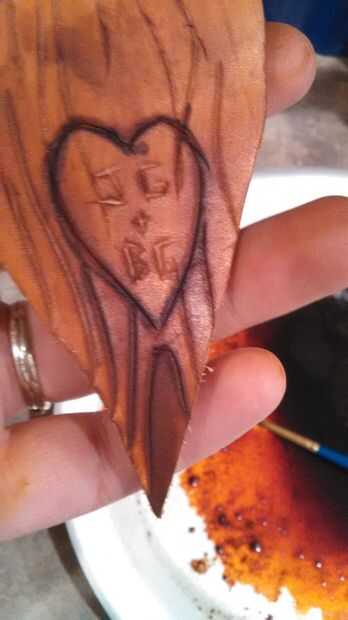 Colocar un poco de tinte de cuero marrón en el plato de papel. Agregue agua para diluirlo.
