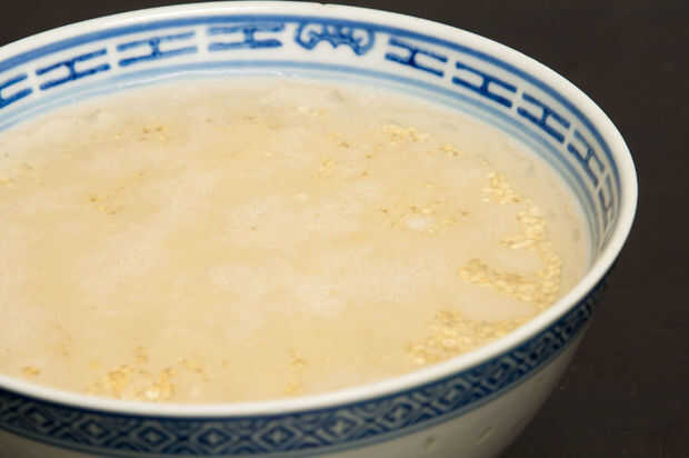 1. Remojar la quinoa en un recipiente con suficiente agua para cubrir todos los granos, le dan un revolver y una cubierta.  Dejar reposar 8 horas.