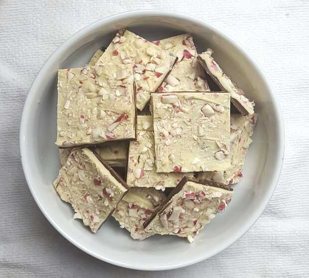 corteza de menta hace una receta de gran fiesta. Chocolate oscuro o semi amargo, chocolate blanco y caramelos de menta machacada. ¿Qué podría ser más fácil o más sabrosa?También es un regalo de vacaciones caseras y mucho más barato cuando lo haces a