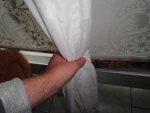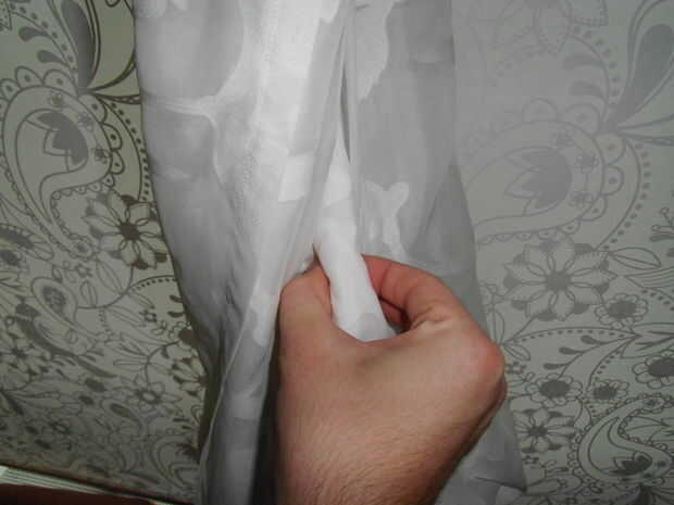 Debe agarrar el centro de la cortina y tome alrededor de la mitad el material entre sus dedos. Suena más complicado de lo que es. Al menos así lo espero.