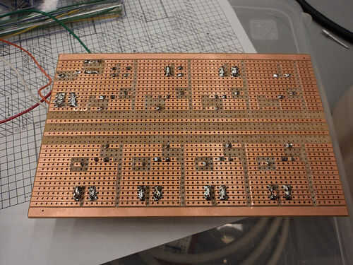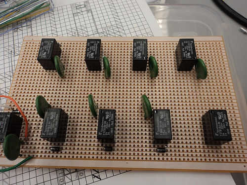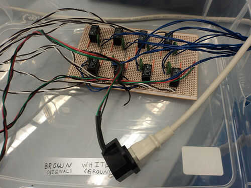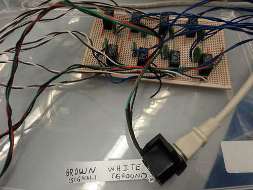 Se utilizó un perfboard agujereada 35 x 61. El actual funciona hacia abajo el perfboard en cada tira de cobre, por lo que hemos utilizado una dremel para limpiar apagado el cobre para aislar cada circuito del relé. Cuando el circuito en perfboard con cableado, aislamos la señal de 120 V, que vino de un conector iec enchufado en la pared, de cualquier otra parte del circuito. Además, nos une los cables a los solenoides uso rápido conecta (mujer), cubiertas por tubería del encogimiento del calor y cinta aislante de una forma segura y fácil conectar los cables del circuito de relé del solenoide.