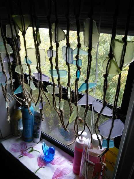 Me encanta el vidrio coloreado en la luz del sol. Originalmente quería hacer una cortina con cuentas rústica para mi baño, pero era difícil encontrar perlas de vidrio barato con agujeros lo suficientemente grandes para yute de cadena a través de. En mi búsqueda, topé con un pequeño pack de arte de vidrio de mar y decidió hacer.