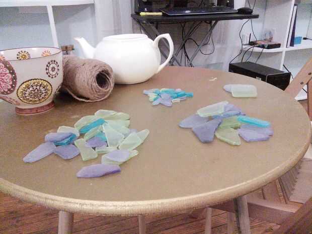 (1) vidrio separado en montones según tamaño. Esta forma, puede ritmo a ti mismo y no acabe con todas las piezas grandes por un lado y no quedarse sin la mitad de cualquier color a través del proyecto.