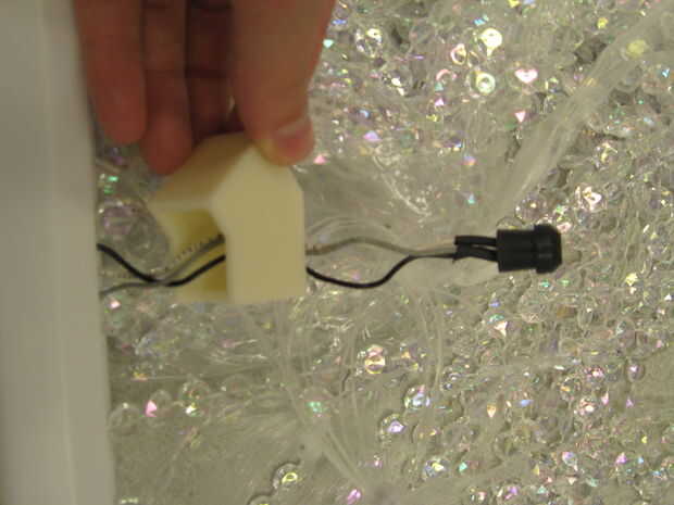 Después de que se fabrica el caso, la soldadura de los extremos de los cables para el sensor de movimiento y caber todo en el caso. El caso (con los cables ocultado dentro) se puede pegar con el resto de la cortina.