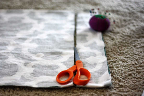 Determinar la longitud deseada de la falda. Aunque utilicé mi falda como guía, terminó siendo un poco más largo de lo que quería. Así después tirando de la falda sin terminar, decidir cuánto quería ser y agregar un par de pulgadas para la cubierta elástica, recortado a la tela sobrante como se muestra arriba. (Porque contó en el dobladillo del fabricante a lo largo de la parte inferior de la falda, corté a la tela sobrante de la cintura).