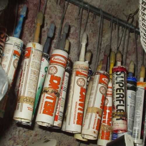 trato de todo lo que pueda reciclar. Como también soy un artista, comprar mis pinturas de acrílico a granel, en frascos de pinta. Apertura y cierre los frascos todo el tiempo permiten que el aire en los tarros que causa algunos pintura seca en el frasco y haz perdido. Para evitar el desperdicio de pintura, transferir de los tarros en los cartuchos de silicona vacío, reemplazando el original tapones y tapado los inyectores con tapas de goma de silicona forma sobre las puntas de los cartuchos sin usar.