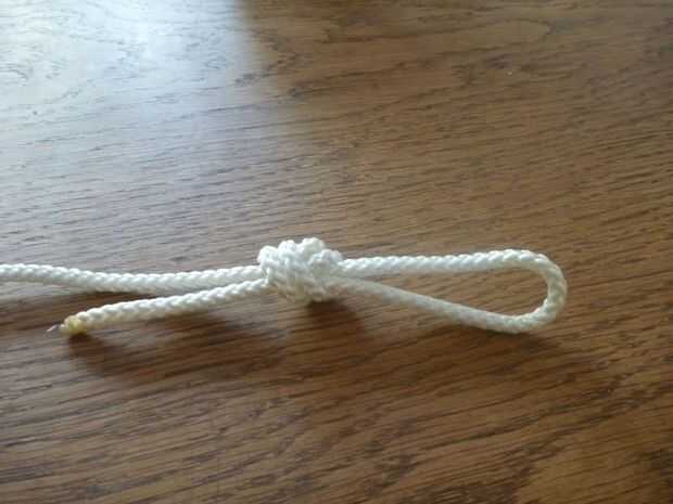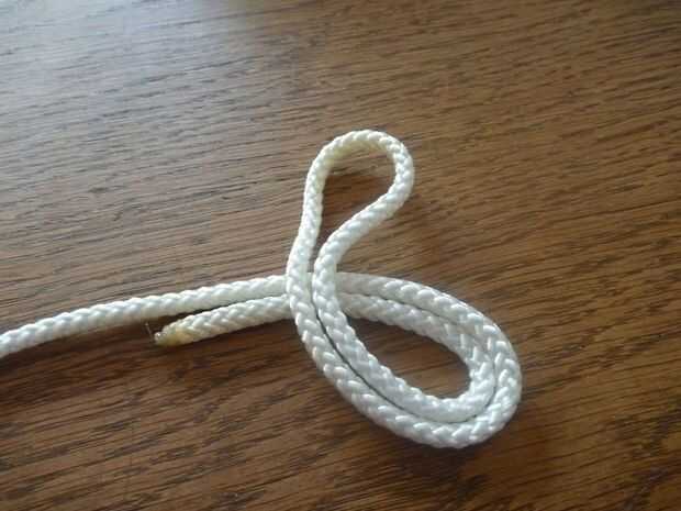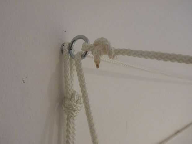 Preparar las cuerdas base de 132cm de largo. En primer lugar hacer un bucle que es ligeramente más grande que el anillo del tornillo en la pared. Este es un nudo fácil. Gusta la demostración de los cuadros.