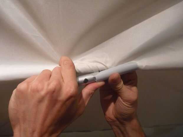 Abrir los clips hacinados en una llave de tubo y entonces cambiado de puesto el clip en la cortina. Deslice lentamente la llave de la pipa hacia fuera. El tubo superior e inferior necesita cuatro clips y luego en cada cuadro del lado.