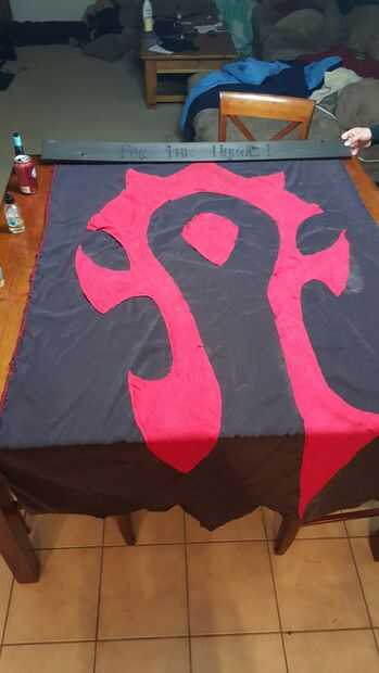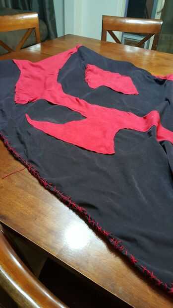 Lo rojo a lo largo de los dos lados y luego lo negro en el símbolo de todo. Quería que se vea desordenado. Una vez que se hizo, yo sujetado con grapa la parte superior a la parte posterior de la madera.