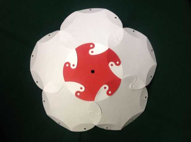 Los seis módulos de caras cada uno se conectará a tres otros seis módulos de caras y tres cinco caras módulos.