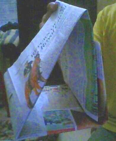 Doblar el periódico en una hoja de largo plisada y doblar en un triángulo con dos lados superpuestos unos a otros.