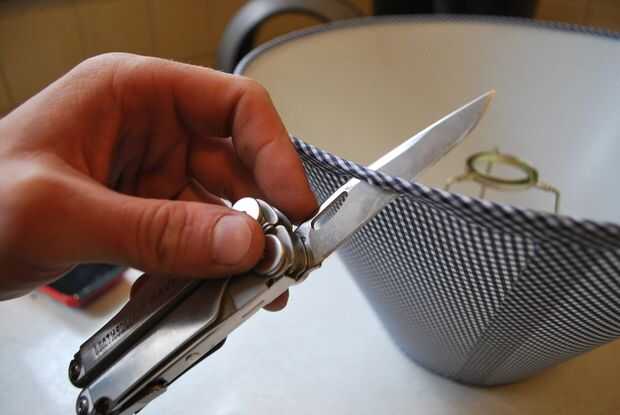 Comienza por cortar a la tela el alambre en su lámpara. Es importante para pasos posteriores mantener intacta la tela y el hilo. La porción de tela se convertirá en una galería de símbolos para la sombra de rayos x en el futuro los pasos.
