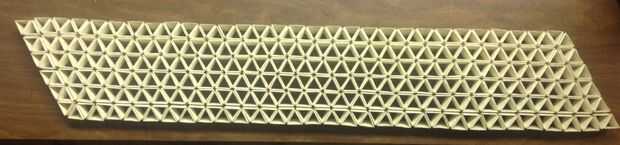 El cuarto imagen muestra lo que se tiene cuando todos diez triángulos se ponen juntos en una tira larga.