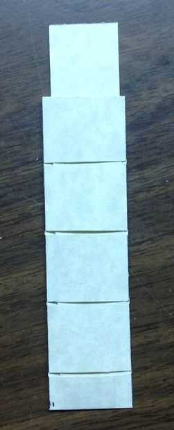 Cada triángulo se hace de un trozo de cartulina 5,5 pulgadas por 1 pulgada