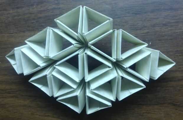 Para cada triángulo con 6 módulos cada lado tienes que hacer 4 triángulos con 3 módulos por cada lado.