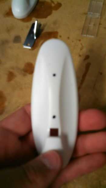 La forma más fácil de diseño de los orificios es el montaje de barra de cortina en la pieza de plástico y marque los orificios. Ser conscientes de que están poniendo los agujeros, asegúrese de que hay espacio para la tuerca. Hay algunas costillas en la parte trasera de la pieza principal de plástico que debe evitarse. Si usted quiere ser muy cuidadoso, que usted puede comprobar para ver donde estará el orificio desde la parte trasera se alumbrando con una linterna a través del frente. Ver las fotos y notas adjuntas para más detalles sobre la colocación.