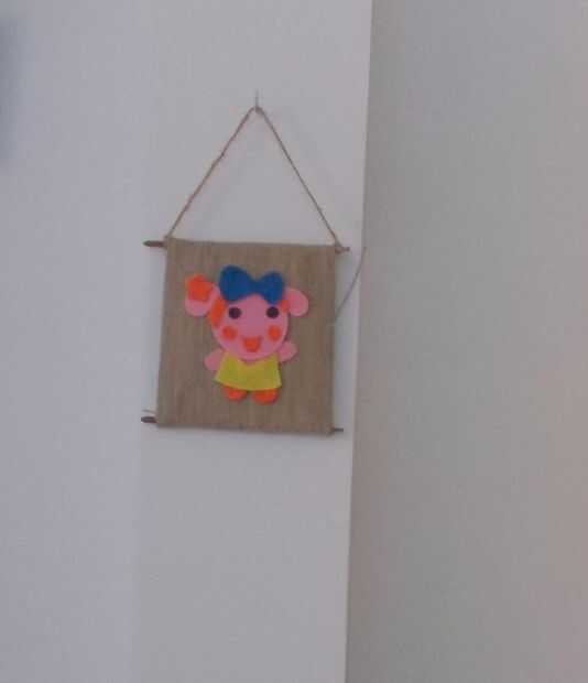 Es algo lindo al hacer una cortina de tela de arpillera pequeña Miss La Sen para colgar en la habitación de tus hijos.