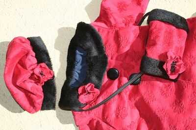 Yo quería hacer algo clásico con un toque moderno. Empecé con una blusa básica y mangas. Había un trozo de pelo de camello negro entre las telas de mi mamá, así que decidí utiliza para un collar. También hizo una vincha y recortado el sombrero que empareja y manguito con el pelo de camello.